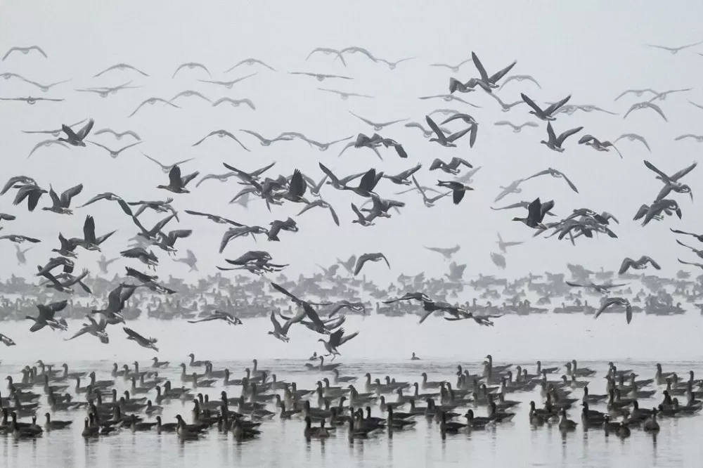 By late November, 40,000–50,000 birds typically roost on the lake — mostly greater white-fronted geese and greylag geese. Occasionally, observers even spot globally endangered species among them. The wild geese migrate to Hungary from as far as 6,000 kilometers away, traveling from northern Scandinavia and Siberia once the cold sets in.